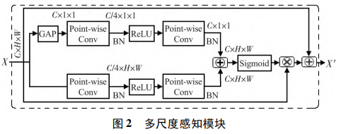 (1)引入多尺度特征感知模块应对尺度变化中的全局大目标和局部小目标。