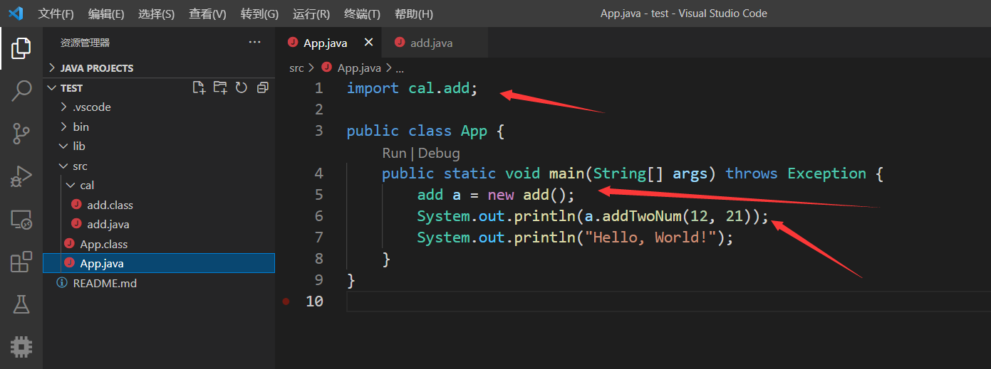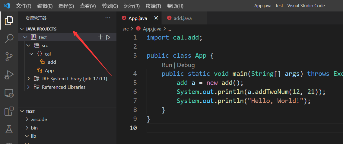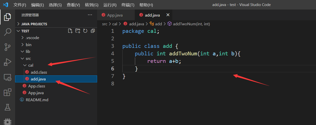 1、在src中新建一个文件夹,然后建立一个add.java文件,建立一个add类。