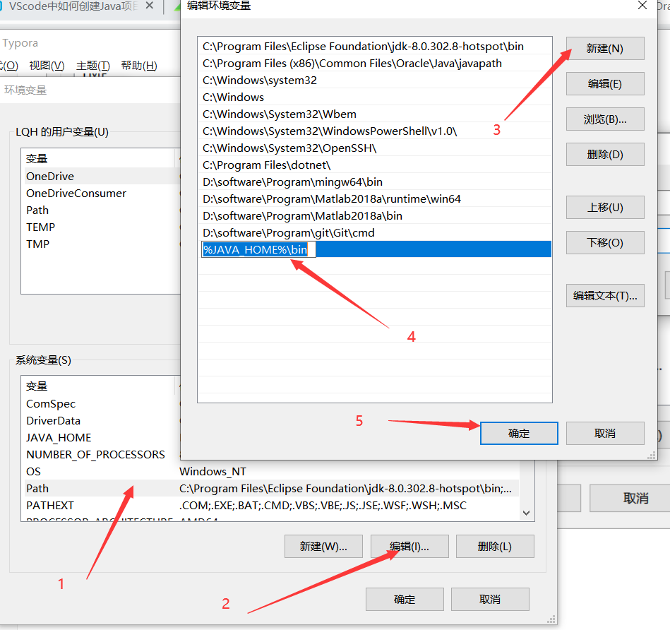 3、点击系统变量中的Path,然后点击编辑,然后把bin的路径填上。按道理来说其实填路径这一步,直接把bin的路径加到Path中也可以,但是网上好多教的都是做一个JAVA_HOME变量,我也不知道为啥。