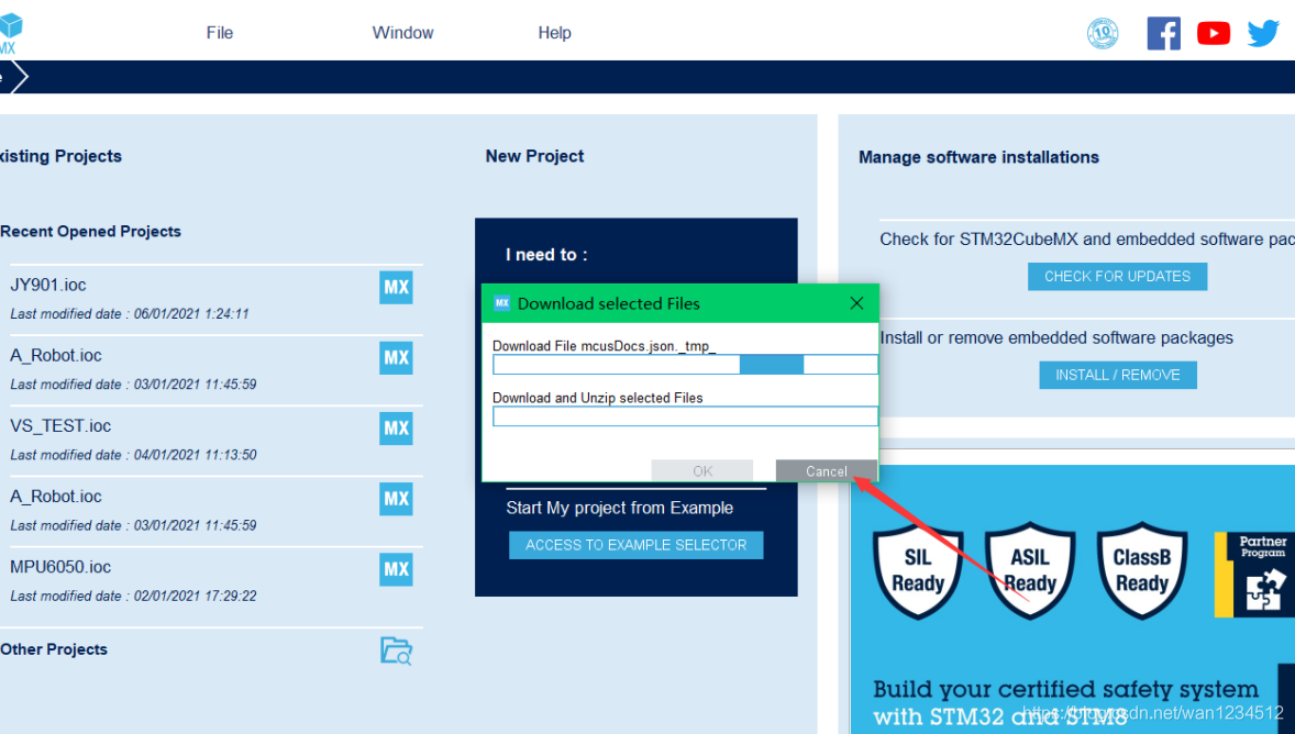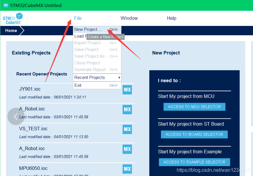 1、打开CubeMX,点击File->New Preject,新建一个工程。