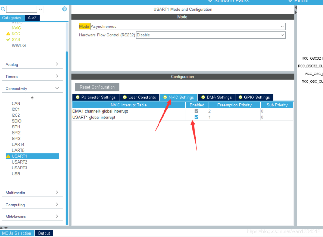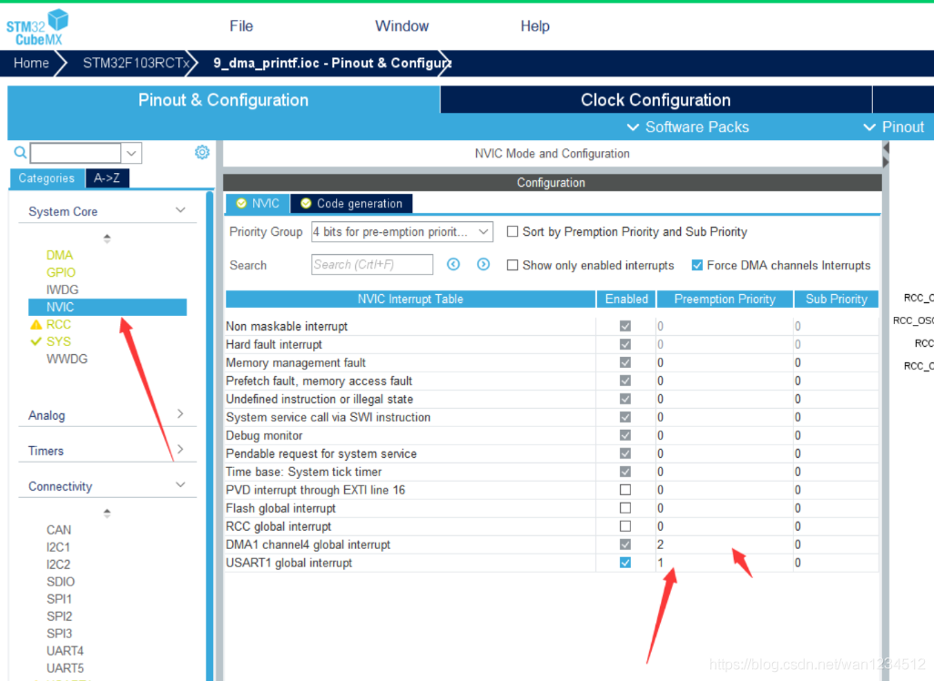 4、NVIC中可配置优先级,然后配置好工程其他文件后生成代码。