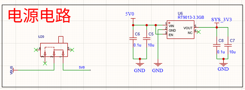 比较简单,主要**注意**要先焊接了电源电路,不然这个 SYS_3V3 是没有电压的。