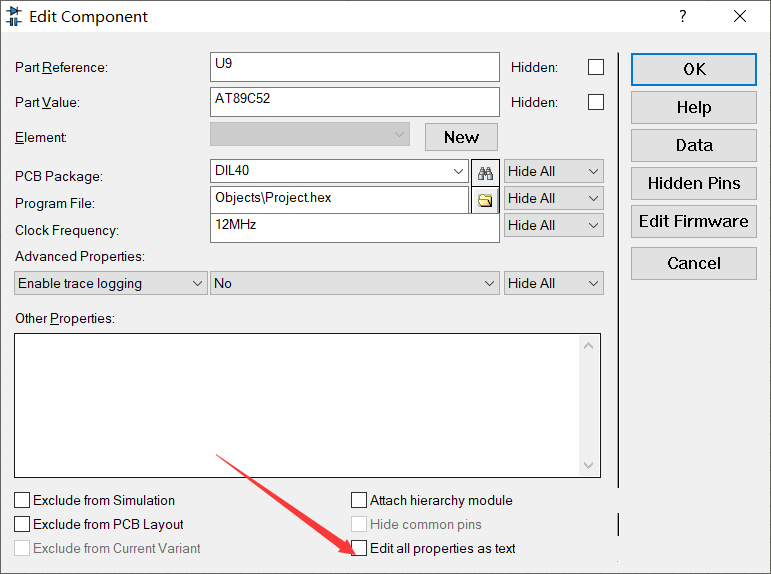 1、右键单片机,编辑属性